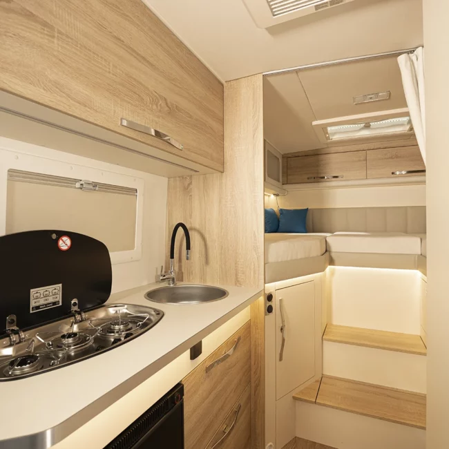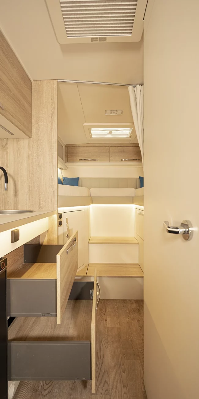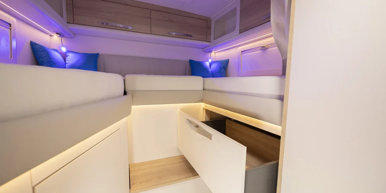 | TANKS | 180 l Frischwasser und 135 l Grauwasser, mit elektrischem Ablassventil |